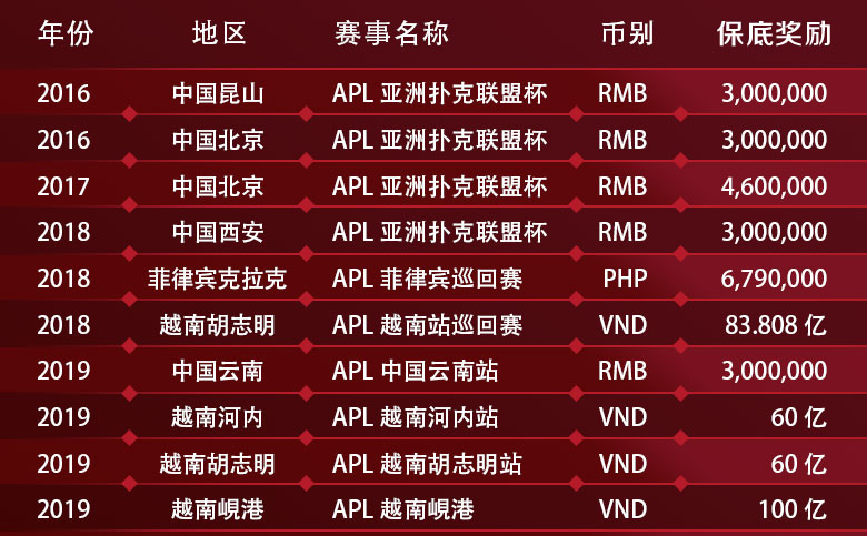 APL是Asia Poker League(亚洲扑克联盟)的简称,是亚洲地区首屈一指的国际性赛事,不仅有着丰厚的赛事奖励,